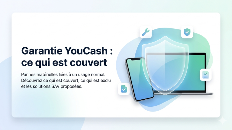 Chez YouCash, la garantie couvre les pannes matérielles liées à un usage normal. Découvrez ce qui est couvert, exclu, et les solutions SAV proposées.