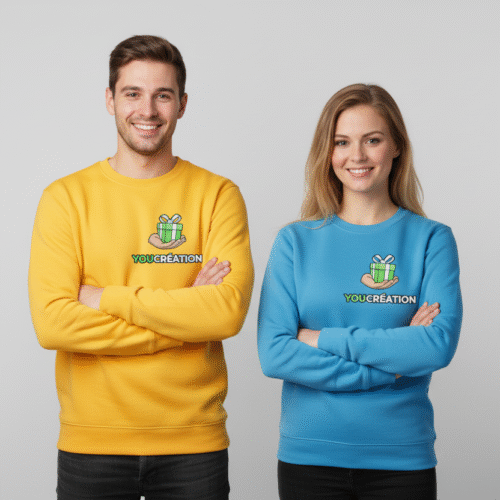 YouCréation vous propose une large gamme de textiles personnalisés à Denain (59220) pour particuliers et professionnels. Du tee-shirt au sweat, en passant par le tablier ou la casquette, chaque pièce est personnalisable avec vos motifs, prénoms, logos ou messages. Nos impressions sont réalisées en atelier local, avec des finitions soignées, pour des vêtements uniques à offrir ou à porter fièrement au quotidien.